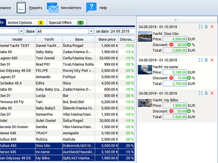 Booking Manager desktop application gives you a wide range of features to handle your yacht charter business easier with increased profit. As Booking Manager user you can use powerful features that enable you to speed up your daily tasks and maximize overall revenue.